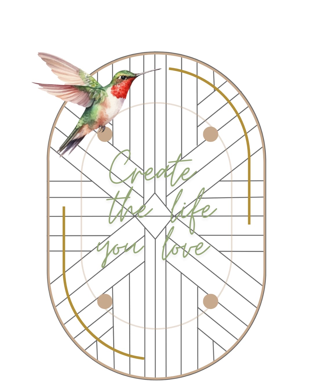 Hummingbird design is set on clear acrylic and gold standoffs, where the flower design is set on black stained wood